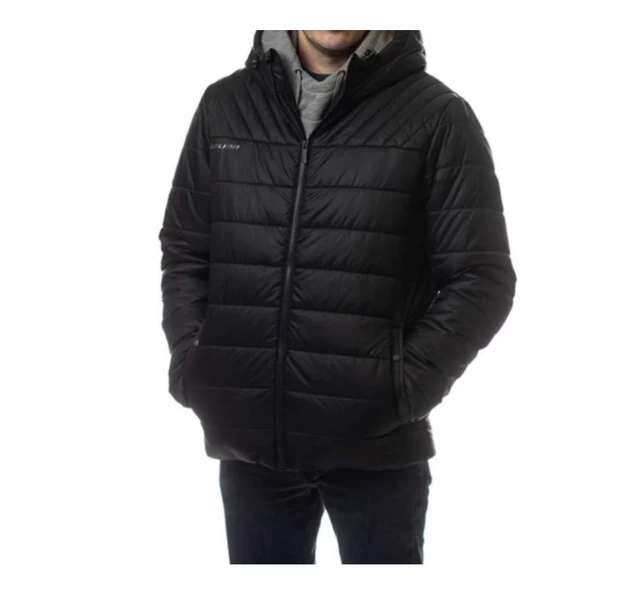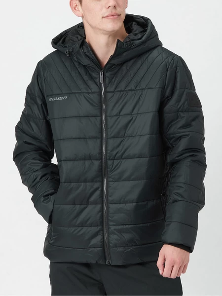 The Bauer Supreme Hooded Puffer Jacket will be your go-to in any cold or wet condition. It features PrimaLoft Insulation, a recycled synthetic fiber that mimics the warmth of down and offers the same performance in wet conditions. So no matter what weather condition you’re in, Bauer’s Hooded Puffer Jacket will keep you warm, dry, and looking great.On the inside of the jacket, there is a zippered pocket that can safely store a cellphone or wallet. Down below, there is a name and number patch for players to label their team jacket. Speaking of teams, Bauer included a large zippered access for custom embellishment on the back. KEY TECHNOLOGIES YKK Zippers Trusted by many manufacturers for its quality and reliability. PrimaLoft Insulation An extremely lightweight and breathable synthetic insulation that provides warmth in cold conditions. It also performs in wet weather, keeping you dry no matter how hard it pours. Storm Cuffs An elasticized, tight-fitting inner cuff that prevents wind or rain from getting inside the coat. CONSTRUCTION Material Body: 100% Nylon Lining/Fill: 100% Polyester Design PrimaLoft Insulation YKK Zippers Post Embellishment Access Zipper Internal Name and Number Patch Snap Closure Waist Pockets Internal Zippered Chest Pocket Hood with Bungee Adjustment Storm Cuffs Graphic Screen-Printed Bauer Logo on Right Chest Bauer Silicone Patch on Left Sleeve Fit Tapered Hockey Fit Model Number 1056842 The jacket also features two more waist pockets with snap closures and storm cuffs to prevent wind or raining from getting inside the sleeves. A sleek silicone Bauer patch can be seen on the left sleeve and a screen-printed Bauer logo on the right chest, providing a stylish way to represent your favorite hockey brand.