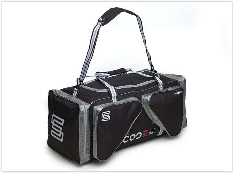 FEATURES• Strapazierfähiges 600D Nylon Außenmaterial• Geräumige Spieler Eishockeytasche• Bietet ausreichend Platz für die komplette Eishockeyausrüstung• Spezifische Taschengrößen (S, L) für jede Altersgruppe• Reißverschlüsse mit praktischer U-Öffnung für optimales Ein- und Auspacken• Komfortable und haltbare Tragegurte• Seitliche Außentaschen für 1 Paar Schlittschuhe• 2 zusätzliche Außentaschen mit diversen Fächern und Trennwänden – inkl. Wäschesack• Verstärkter Boden• Neues SherWood Code Design Größe M90 x 42 x 38 cm L104 x 60 x 45 cm